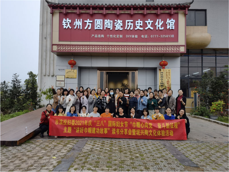 2021年3月8日,欽州市濱海新城投資集團(tuán)有限公司婦委會(huì)圍繞“巾幗心向黨,奮斗新征程”主題,組織開展2021年慶“三八”國際勞動(dòng)?jì)D女節(jié)“講好巾幗建功故事”讀書分享會(huì)暨坭興陶文化體驗(yàn)活動(dòng),活動(dòng)在欽州方圓陶瓷歷史文化館舉行。