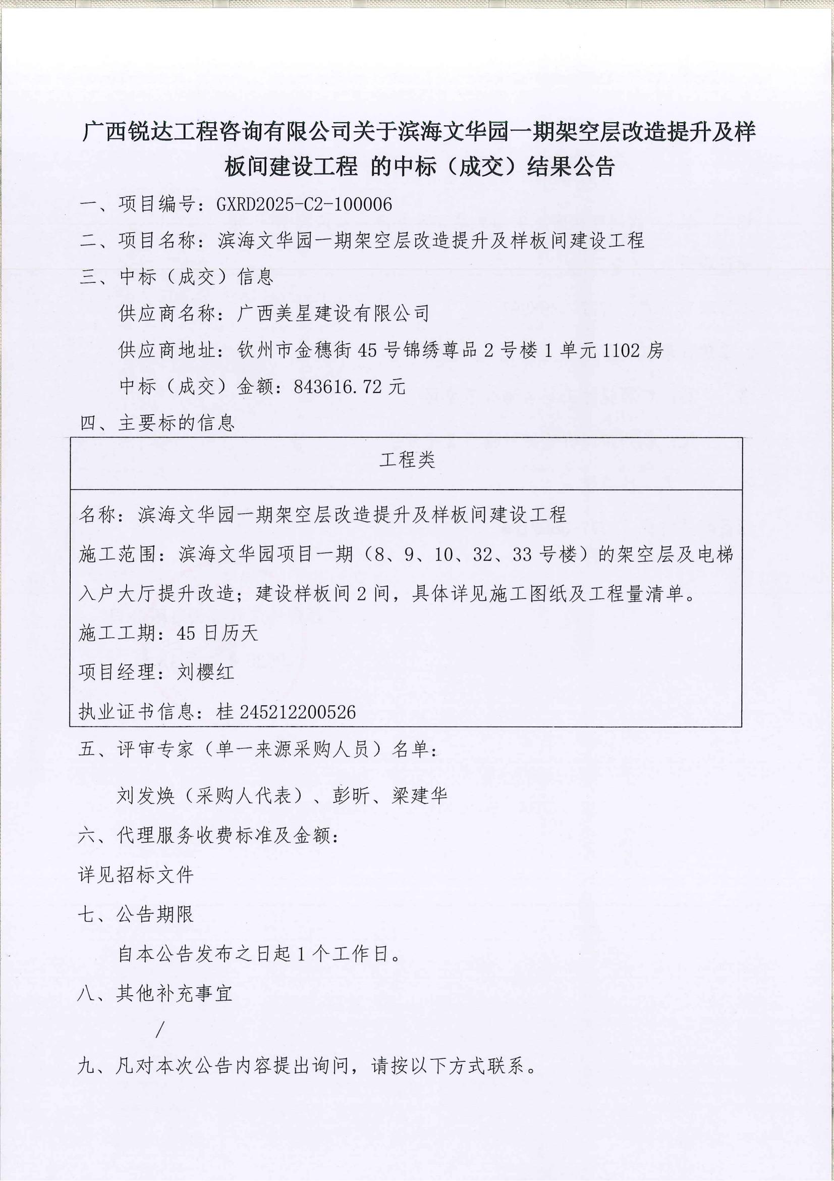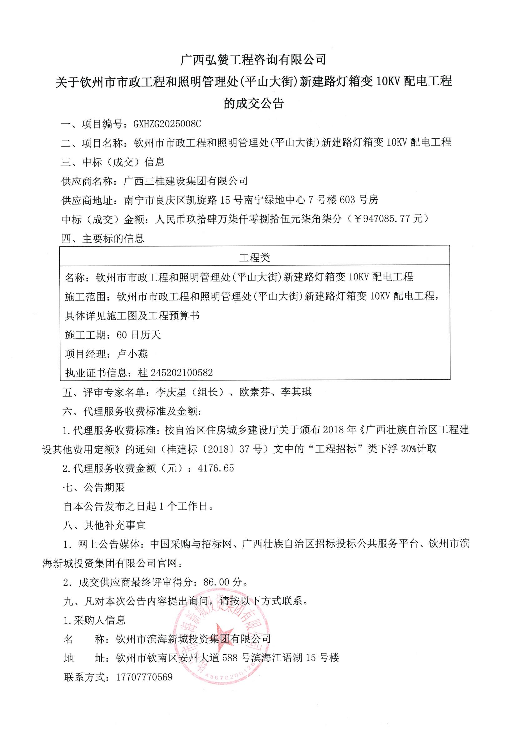 一、項目名稱:賓陽縣公共配送中心勞務(wù)派遣服務(wù)項目 二、項目編號:GXJT-2025-QZZC002 三、成交信息: 序號 入圍供應(yīng)商名稱 管理費(fèi)報價 (元/人/月) 地址 1 廣西高校聯(lián)盟教育投資集團(tuán)有限公司 80.00 南寧市江南區(qū)同樂大道53號泉港·江南企業(yè)總部6號廠...