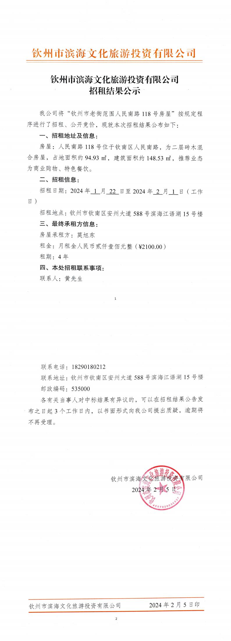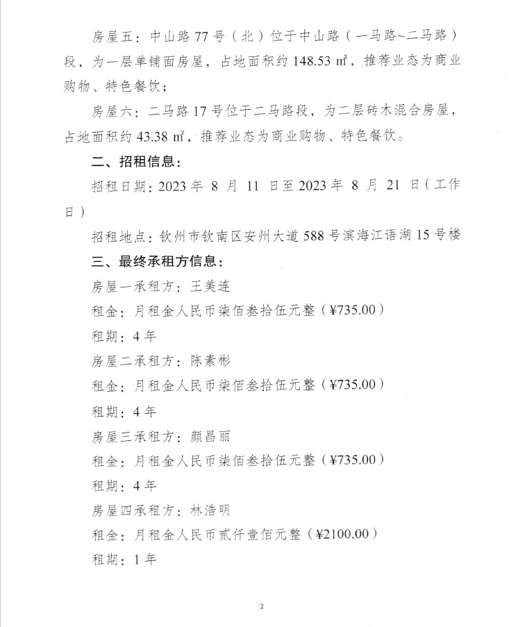 關于欽州市老街范圍人民南路118號房屋公開招租的公示