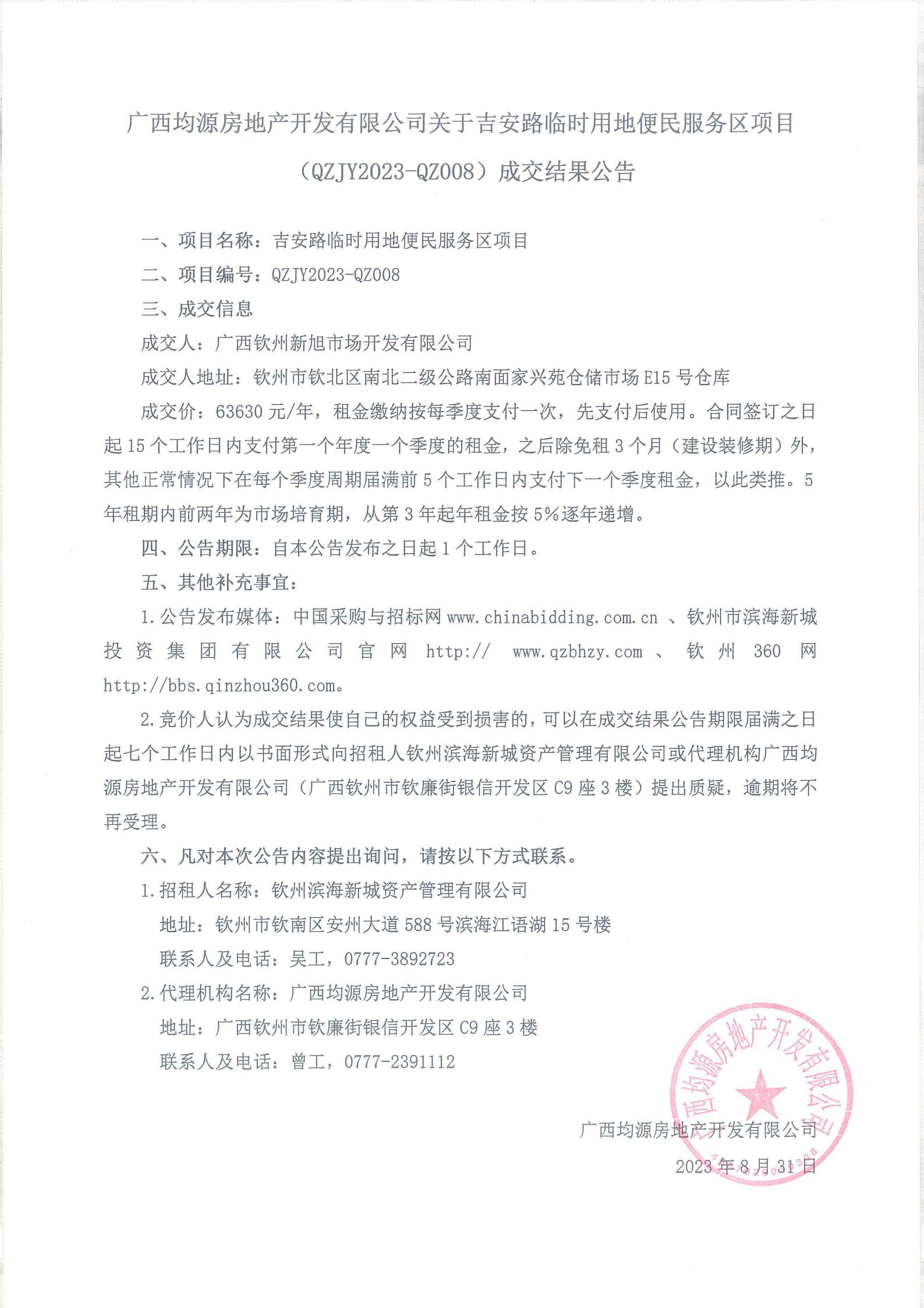 關于吉安路臨時用地便民服務區(qū)項目成交結(jié)果公告