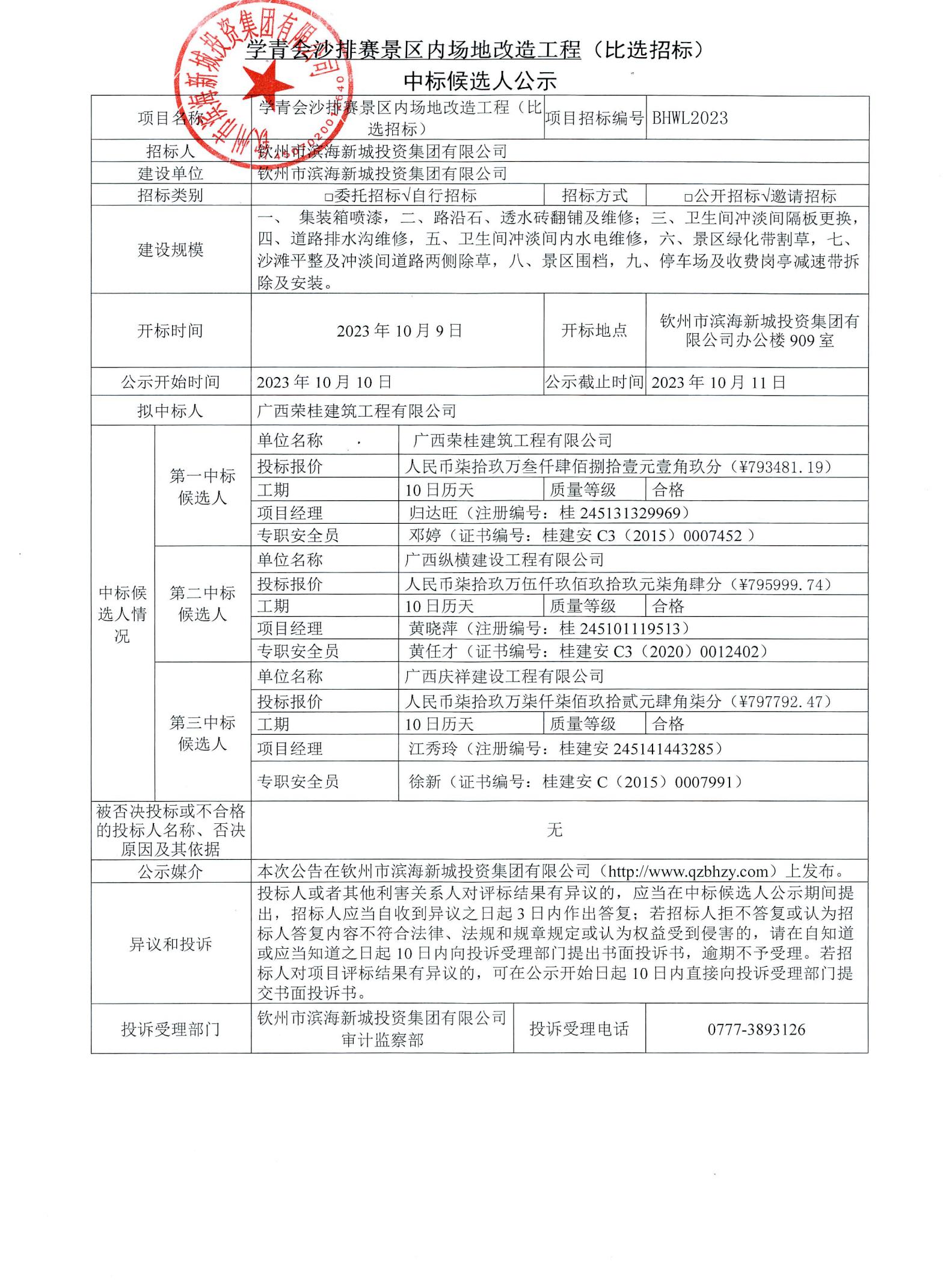 學青會沙排賽景區(qū)內(nèi)場地改造工程(比選招標)中標候選人公示