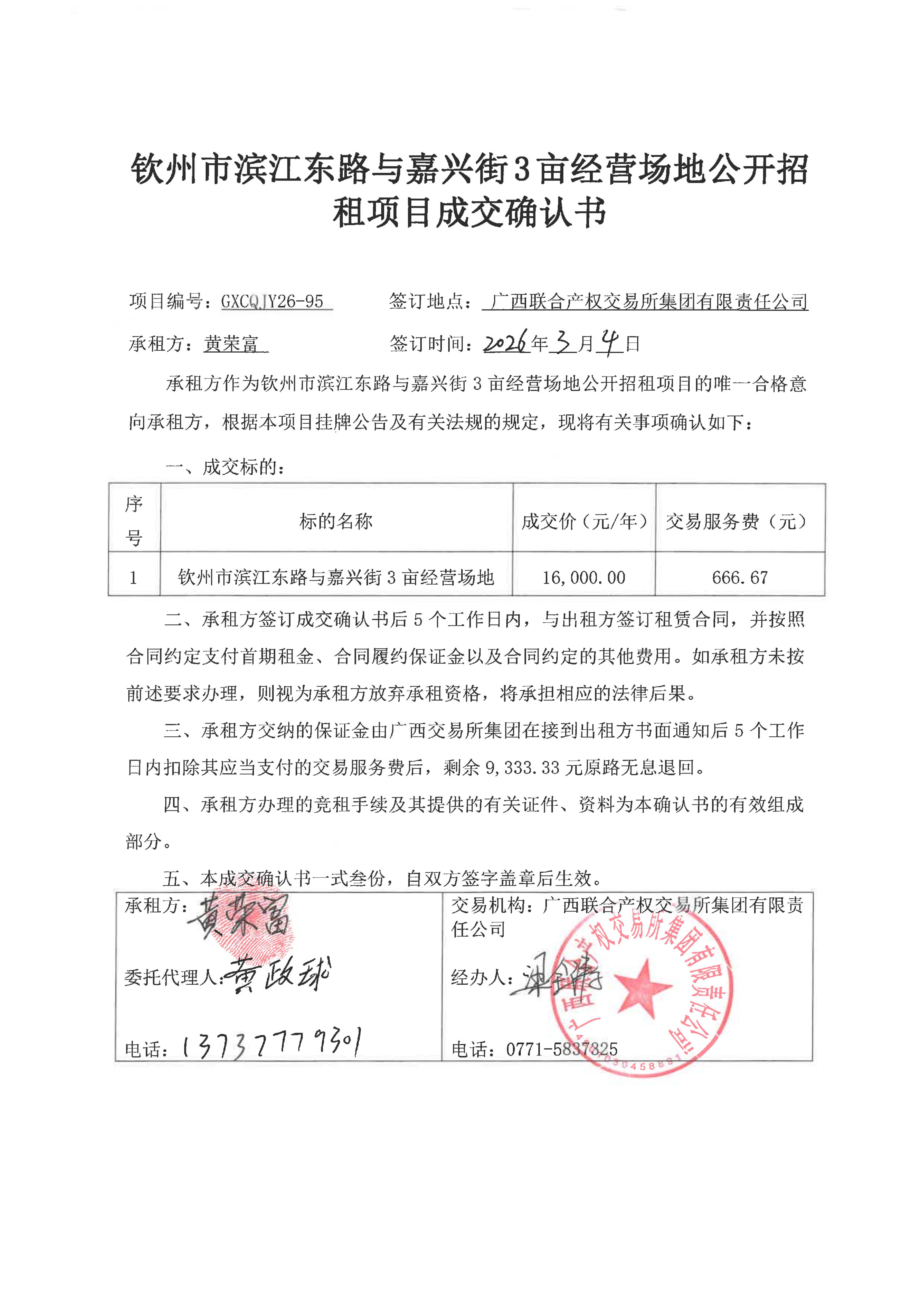 欽州市濱江東路與嘉興街3畝經(jīng)營(yíng)場(chǎng)地公開(kāi)招租項(xiàng)目成交確認(rèn)書(shū)