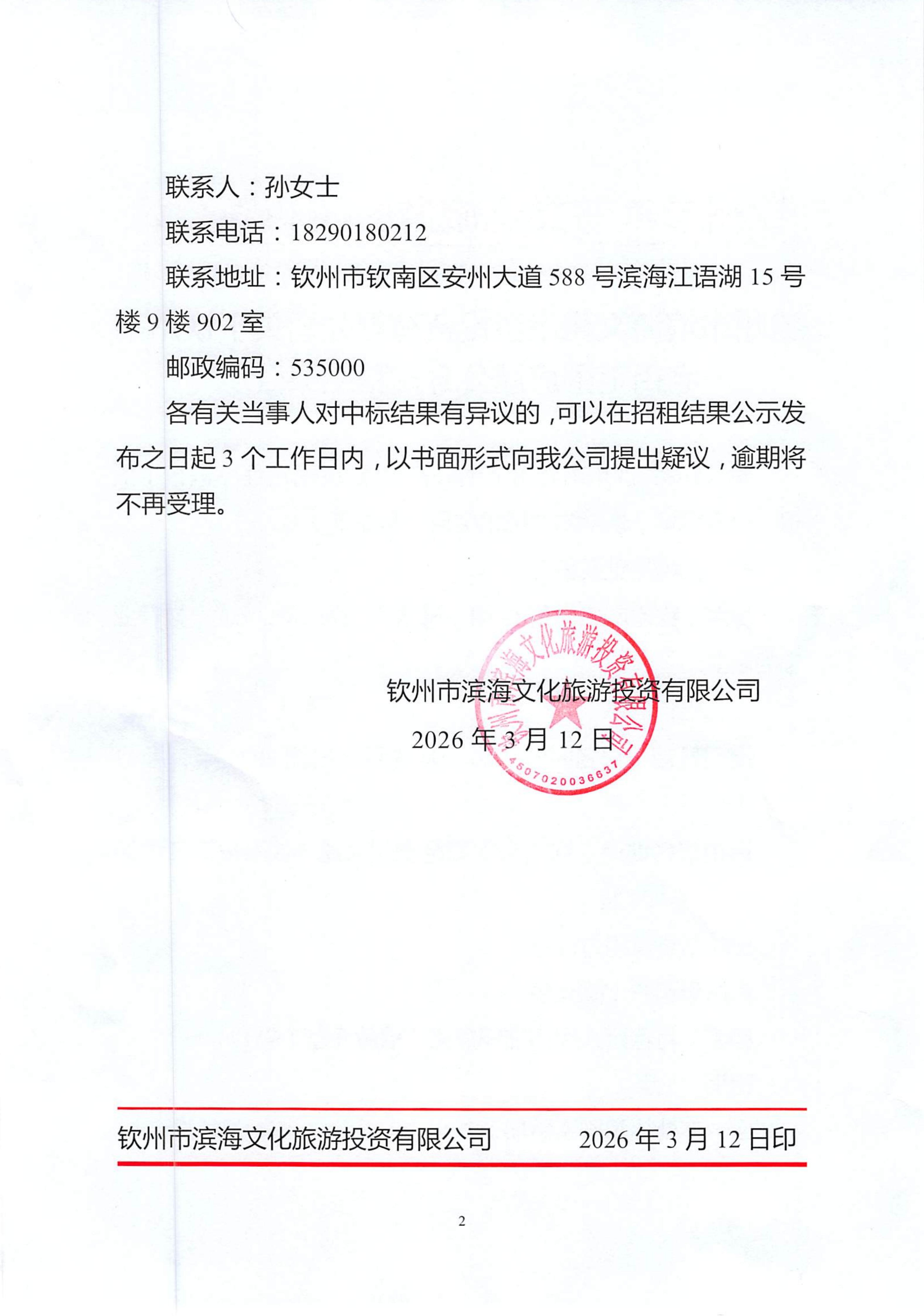 欽州市濱海文化旅游投資有限公司關于欽州市老街范圍房屋公開招租結果公示